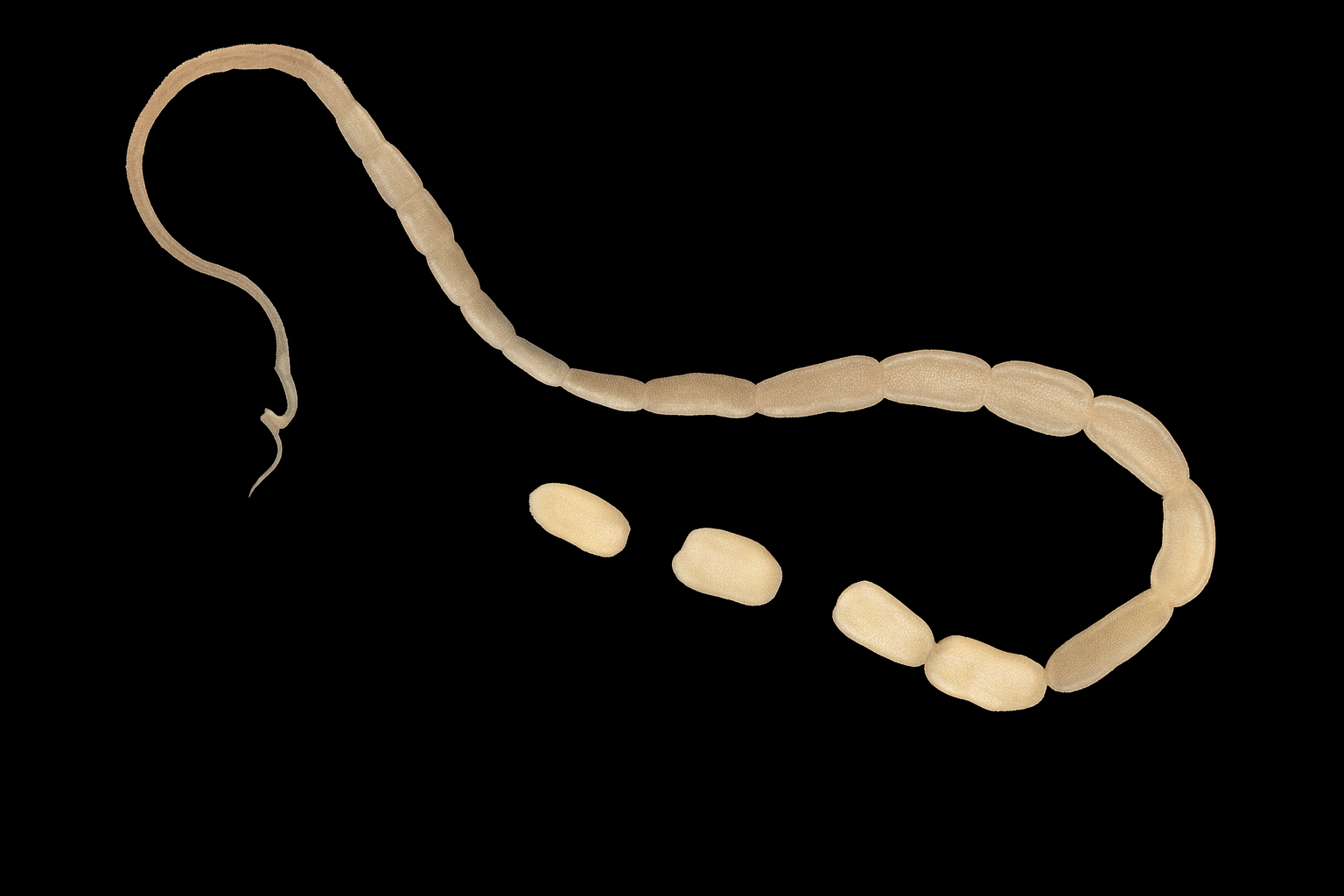 Es gibt auch Bandwürmer, die durch den Verzehr von (Teilen) anderer Tiere oder Kot übertragen werden. Die am häufigsten auf diese Weise übertragenen Bandwürmer sind Taenia-Arten, der Fuchsbandwurm (Echinococcus multilocularis) und der Hundebandwurm (Echinococcus granulosus).