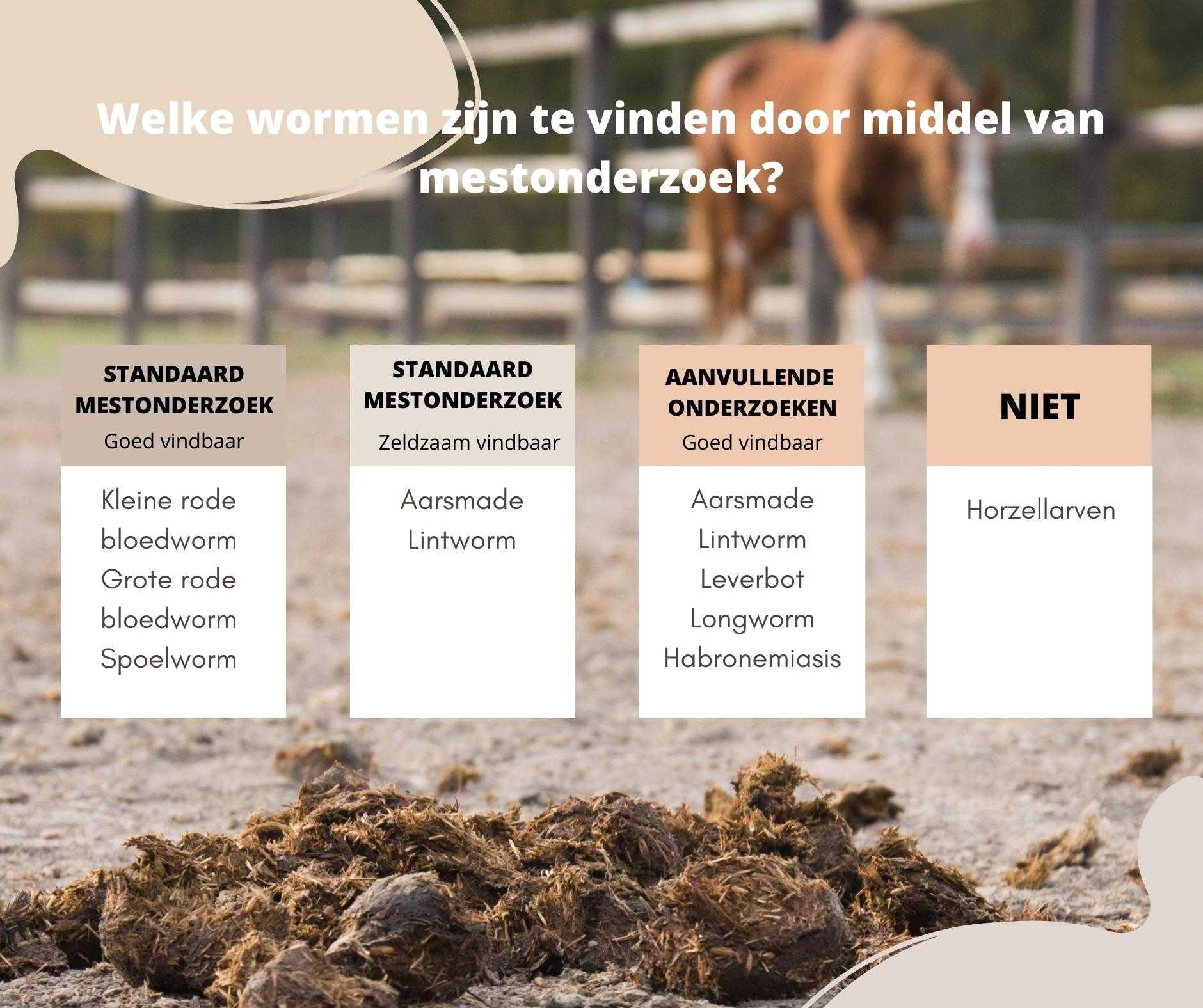 Small and large redworm: These are the most common gastrointestinal worms in the Netherlands. The eggs of small and large redworm are indistinguishable but are very well detectable via fecal testing. It is important to perform a fecal test every 2.5 months to monitor the cycle properly.